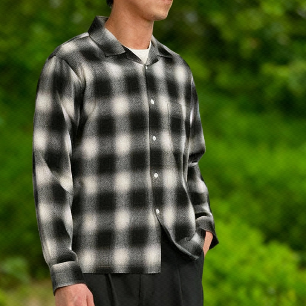 歴史的背景を踏まえルーツを“わかって”着ると、普通のチェック柄と違って見えます。生地はクラシックで肉感のあるチェック生地。ドライな肌触りでヴィンテージライクなオンブレチェックを演出。