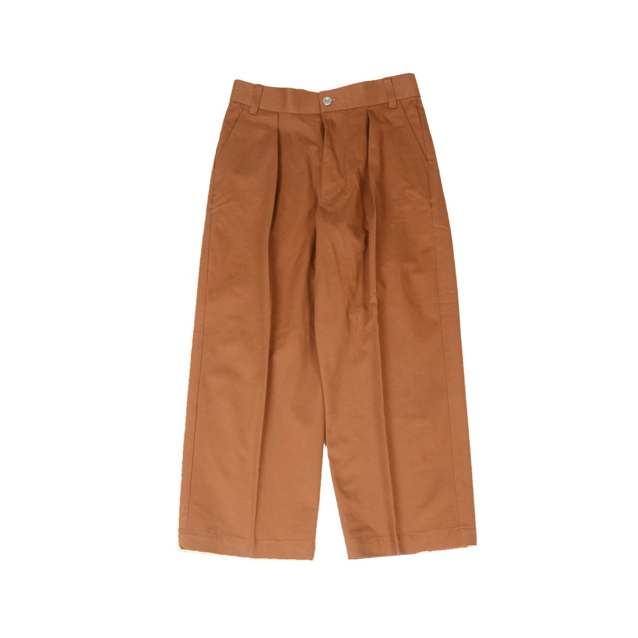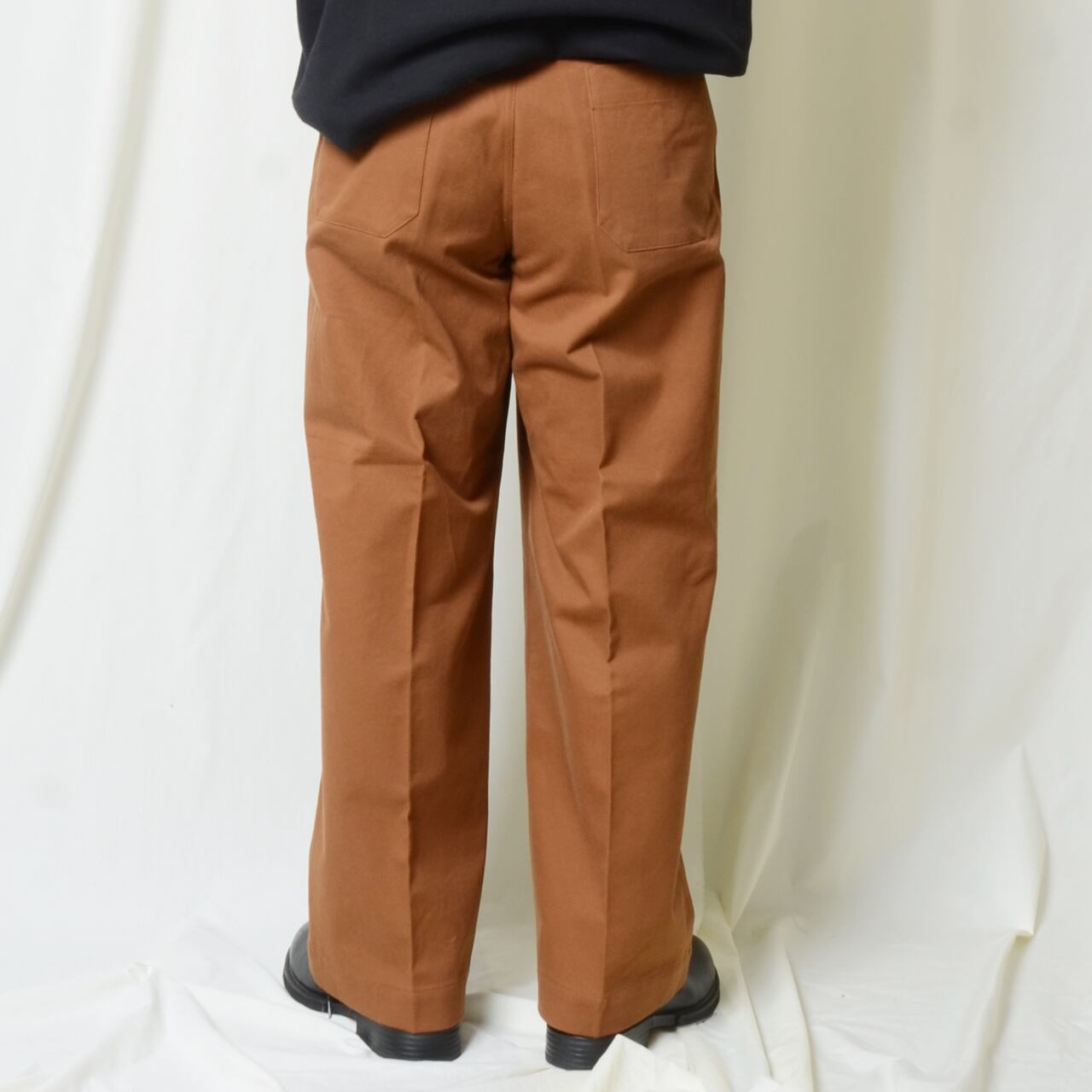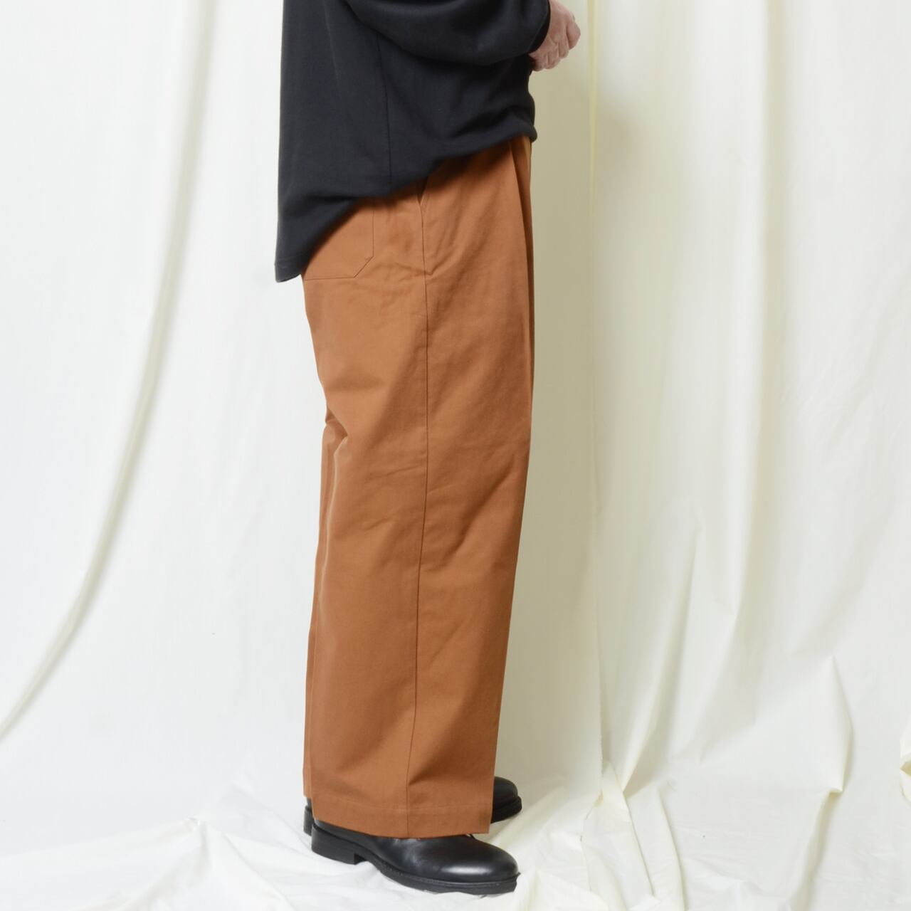 ワイドシルエットでストレートに落ち、深いインタックが印象的なパンツ。