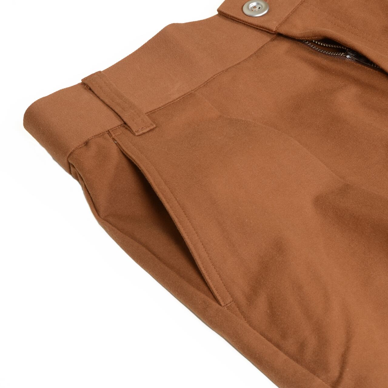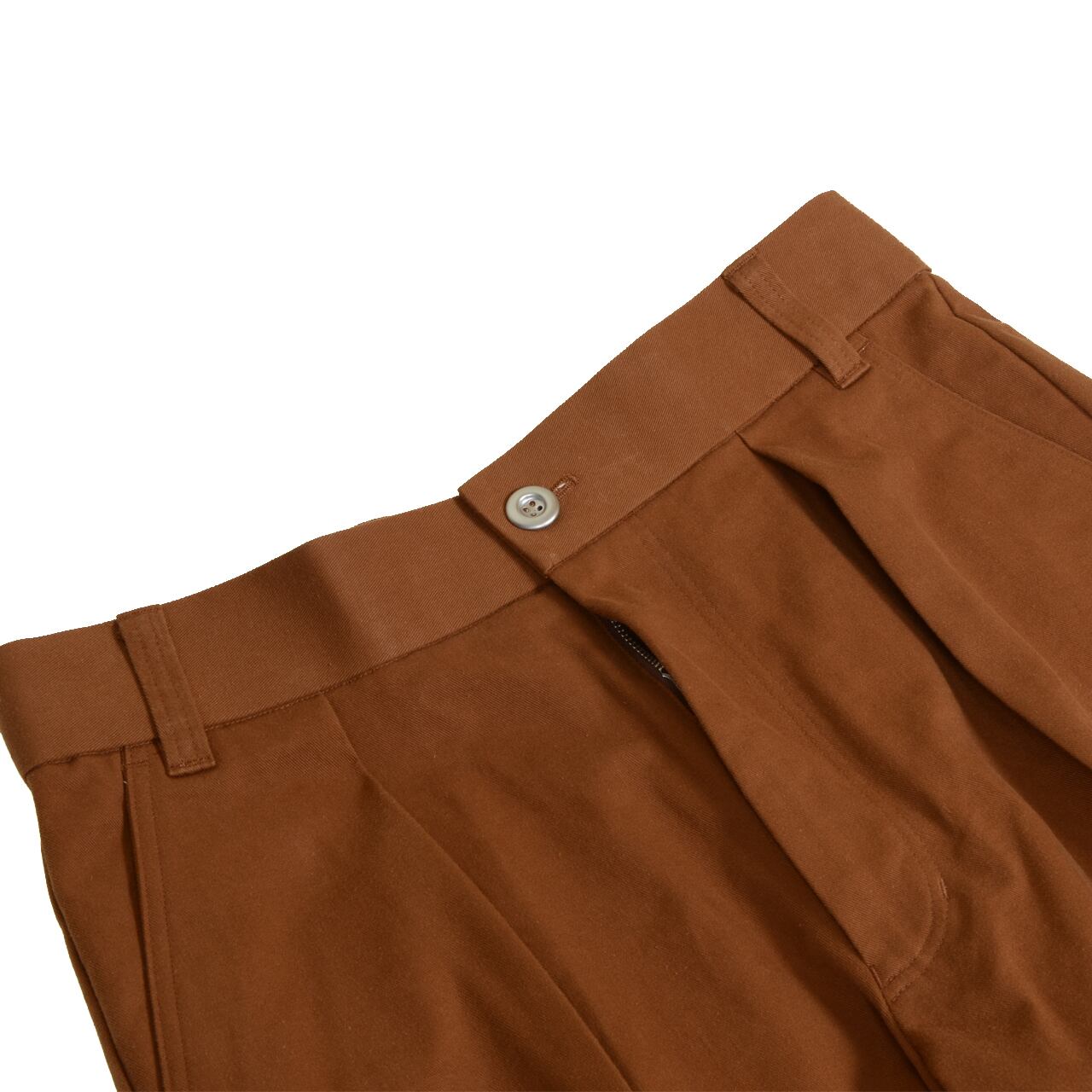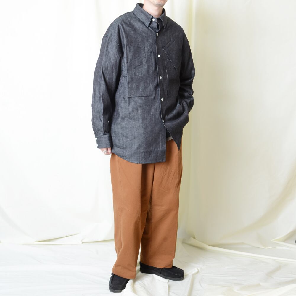 ワイドシルエットでストレートに落ち、深いインタックが印象的なパンツ。