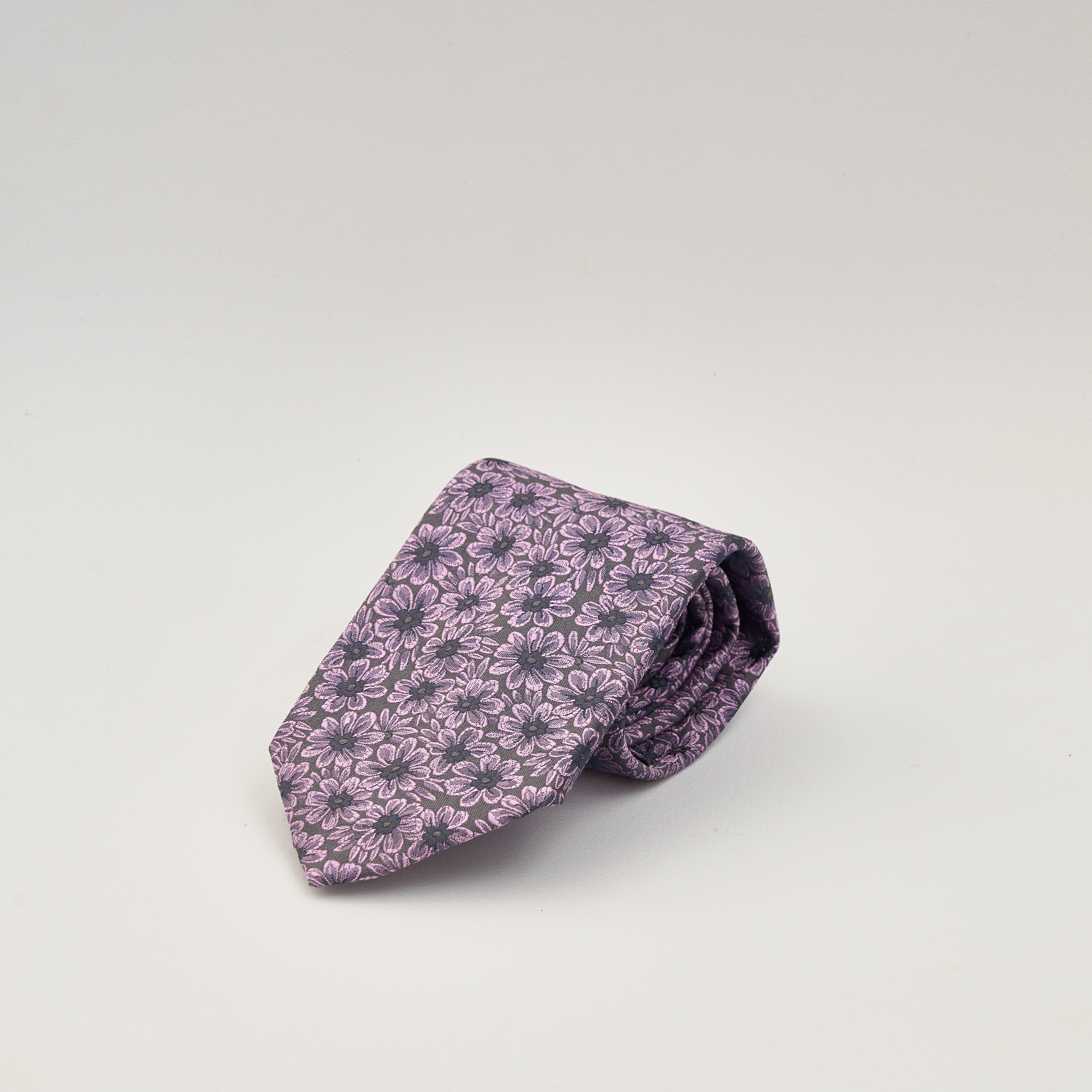花柄が繊細に描かれたデザイン。柔らかな色合いと上品なパターンで、フォーマルな場面はもちろん、カジュアルなジャケットスタイルにも華やかさを添えてくれます。
