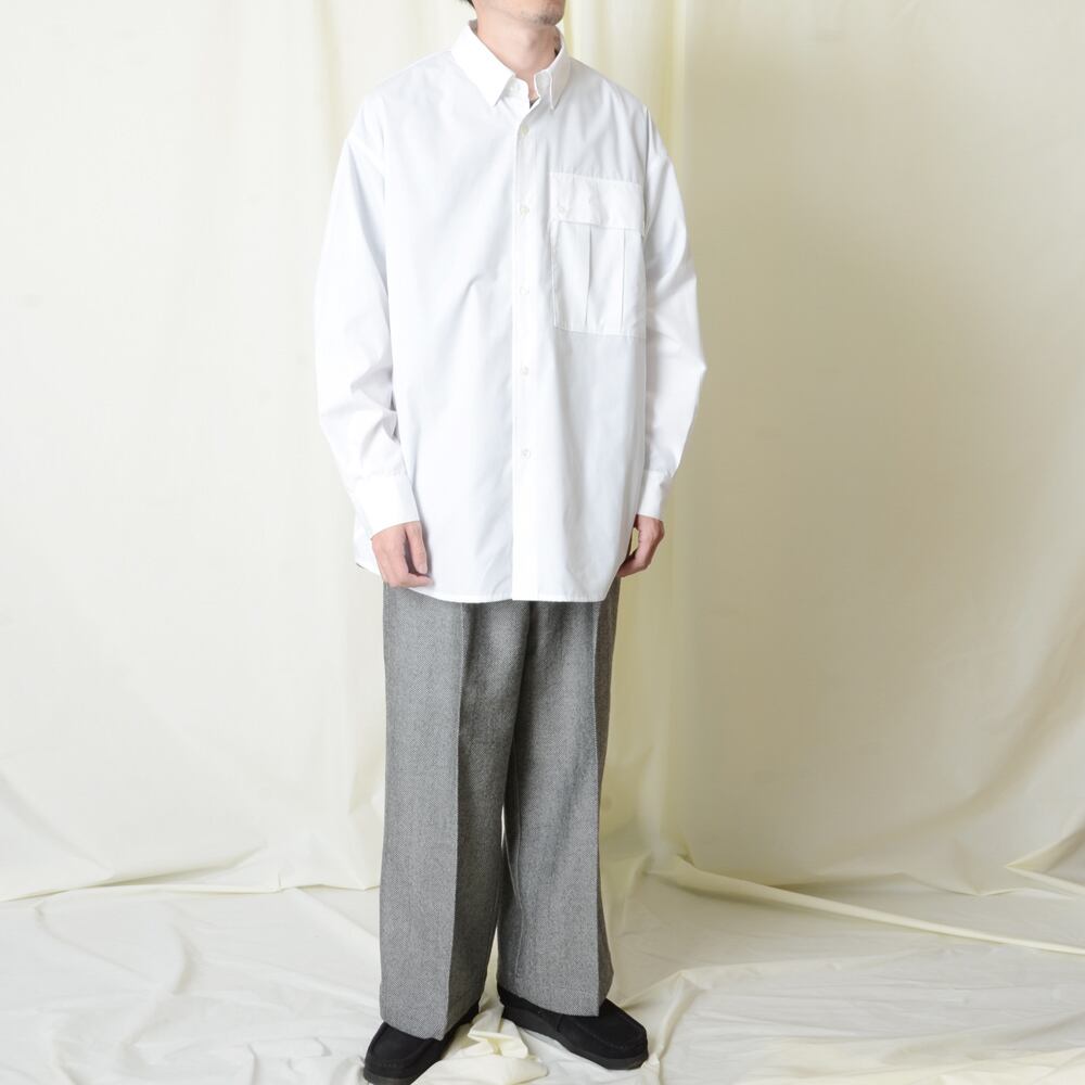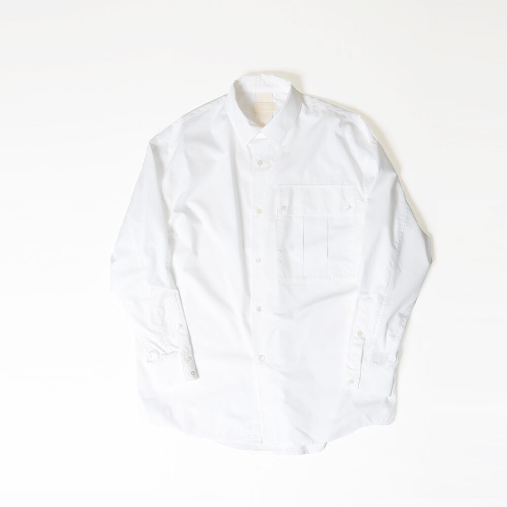 ボリュームのあるビックポケットで胸元に存在感を出しスマートフォンもすっぽり入るデザイン。シルエットはオーバーサイズ、襟部分はボタンダウン仕様。